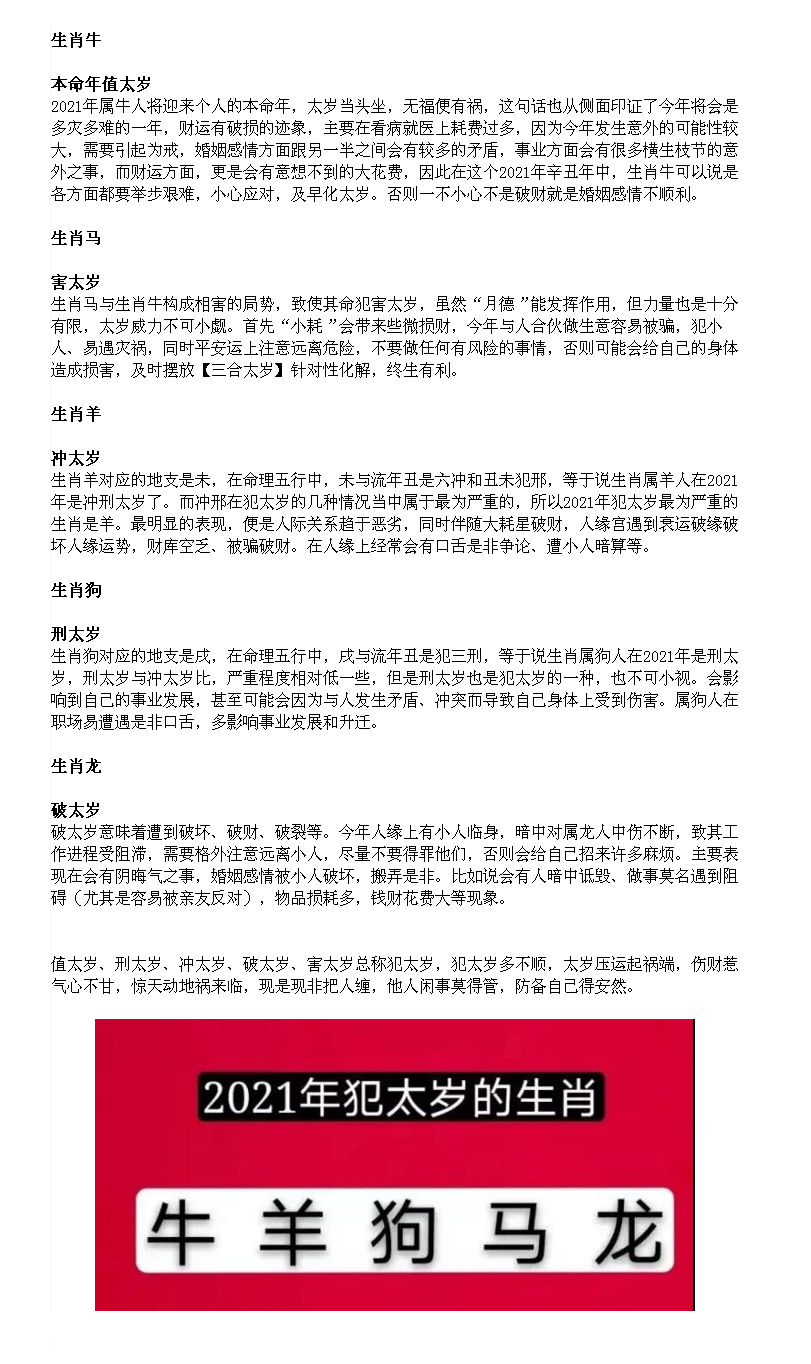 进入2021年辛丑牛年,十二生肖的运势会随着流年太岁和周易五行相生相克的变化而发生改变。